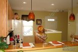 The bar top and countertop shown here were cut and finished from birch butcher-block blank with Minwax Natural stain with a polyurethane finish. The kitchen was designed by Metro Dwelling Design in Charlotte, NC.