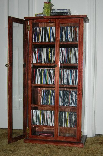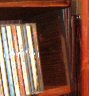 This CD Cabinet has shelves designed for easy removal and replacement of CD cases. Also, the shelves are inclined at 10 degrees to make the cases easier to read from above and to help prevent them from sliding out.