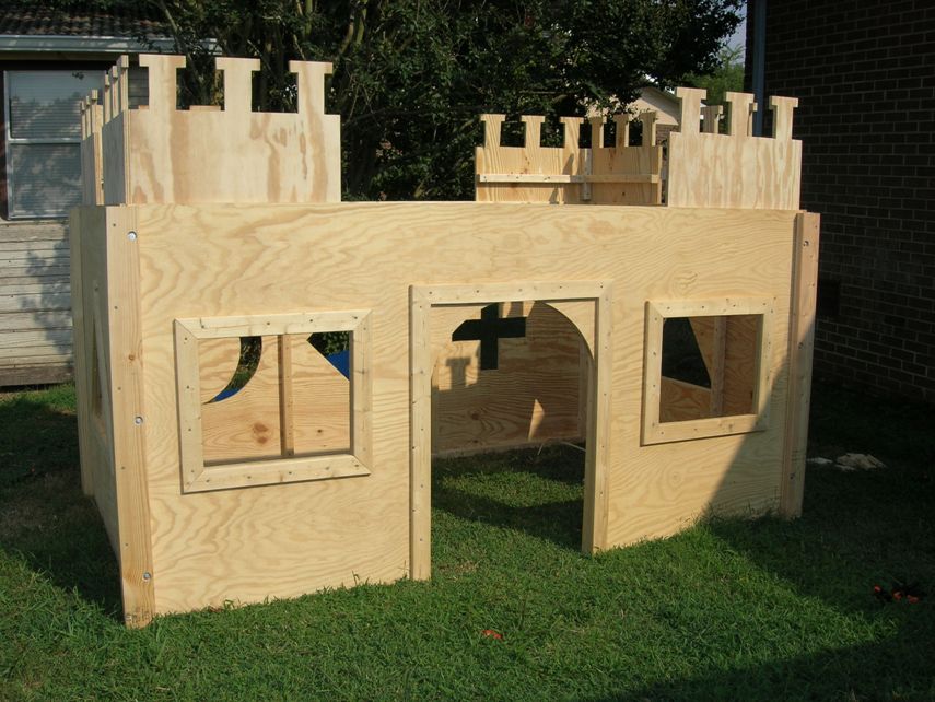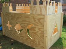 This play castle was built for a party rental company looking for an unusual experience for its clients. It is built for disassembly into flat sections for easy transport. It also has alternate crown tops (not shown) that can used in place of the castle tops.