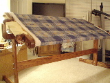 This quilt frame is made of solid oak and is 65" long to facilitate construction of large quilts. It also has ratchets for advancing the quilt while sewing and adjustable angle.